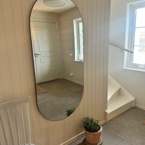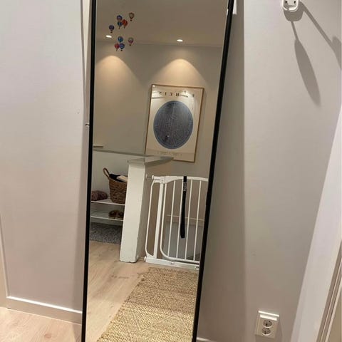 Monteras enkelt på väggen med två skruvar på baksidan, men går också utmärkt att tex ställa mot väggen på en byrå tex.