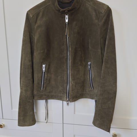Brun skinnjacka från Massimo Dutti i stl M med dragkedja och två fickor fram. Randigt foder och justerbara spännen bak vid nederkanten.