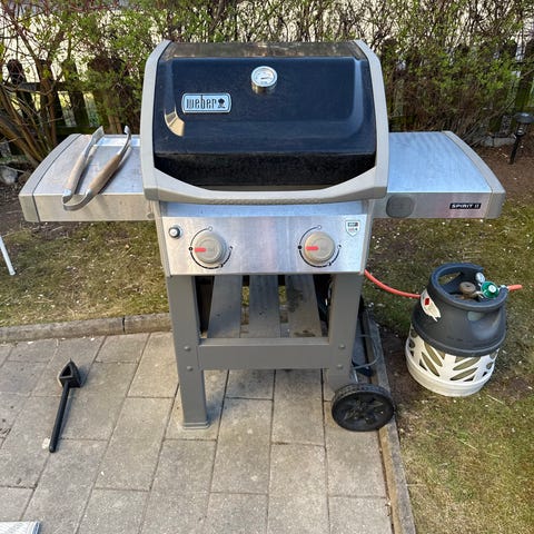 Weber klotgrill med sidobord och överdrag