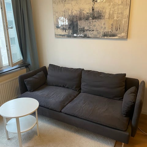 Mycket bekväm soffa som är fast. Har använts i några år, så den är använd men i mycket gott skick. Den är väldigt lätt att rengöra (could use some love).