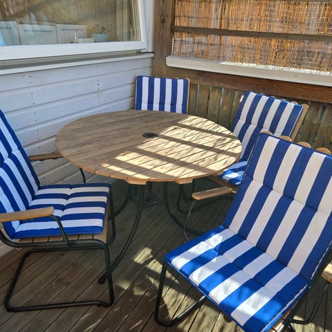 Utemöbler med 6 stolar med dynor.
