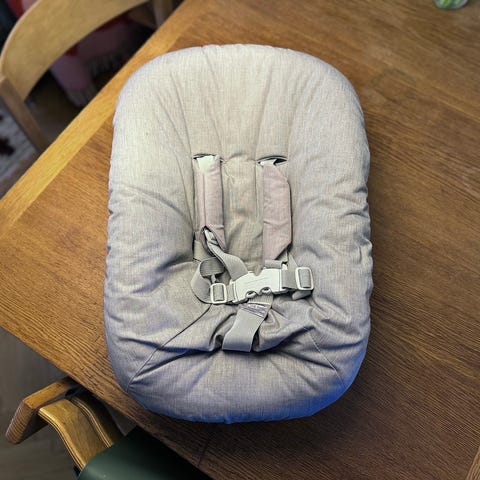 Avtagbar klädsel som är lätt att tvätta. Medföljer en plastbåge som kan hänga över som man kan hänga leksak i t.ex.