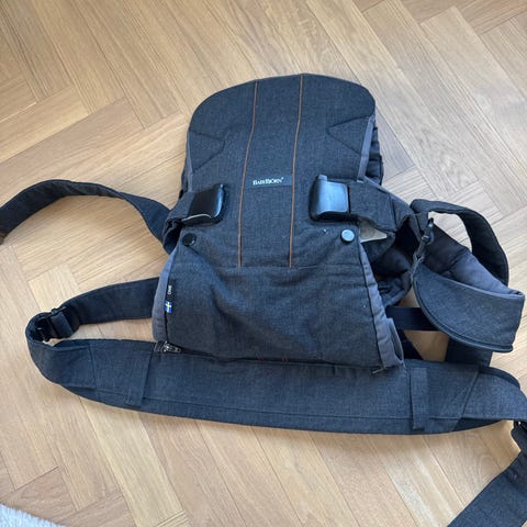 Svart bärsele från BabyBjörn. Finns att hämta på Lilla Essingen.