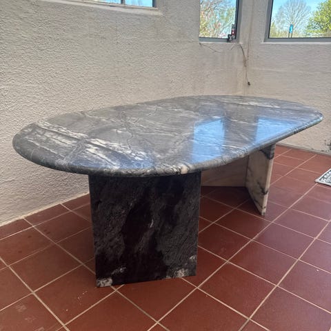 Danskt matbord gjort av krossad och pressad marmor. Utmärkt för att stå inne och ute året runt. Mycket stadig. Nypris 12,995 sek.