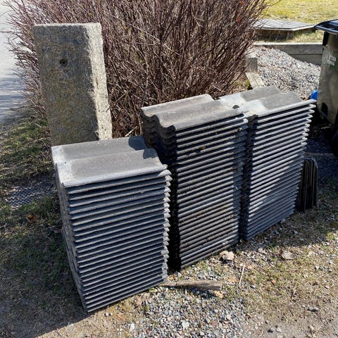 två stycken block i ca 50x50x50 samt två 100x50x50. Kan säkert användas som ankare till flyt-bojar. Vikt okänd men dom är så pass tunga att dom aldrig har flyttats.