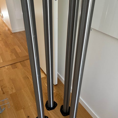 4 st svarta bordsben från IKEA med runda metallfästen upptill. 70 cm långa, skruvas fast i bordsskiva, skruvar medföljer.