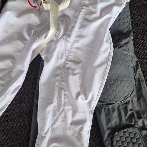 Vit med rött galler. Gott använt skick.