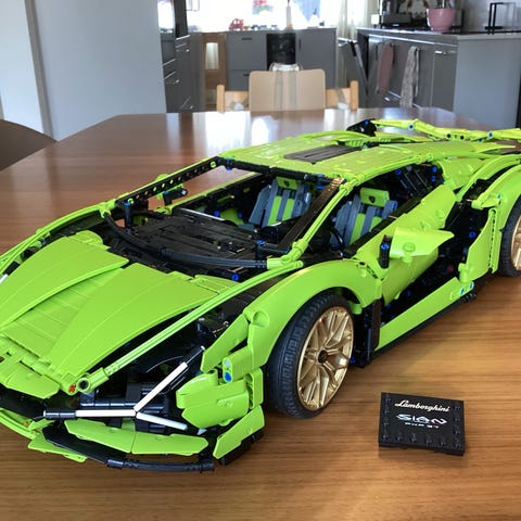 LEGO Technic bil i svart och gult med många detaljer. Instruktionshäfte medföljer på bilden så du ser vilken modell det är.