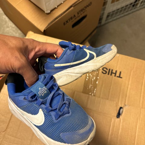 Nike sneakers i stl 26 med kardborreband, lätt för barn att ta på och av själva. Flera par i olika färger med gummisula som ger bra grepp.