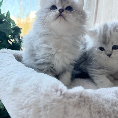 Båda kattungarna är lekfulla, nyfikna och sociala. De trivs med både barn och vuxna och gillar att vara med i vardagen.