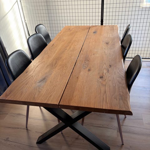 Ett Rejält / STORT och stabilt Matbord i massiv trä, toppskiva är i Ekfaner +6 stolar 200x100x75 cm