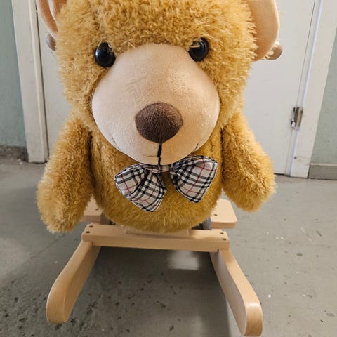 Mysigt gungdjur i form av en tiger i mjuk plysch med trämedar. Har handtag vid huvudet och stabil fot så barnet sitter stadigt när det gungar.