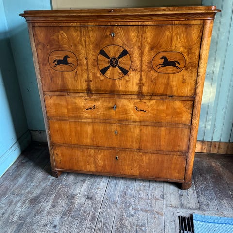 Sekretär i mörkt trä med lådor