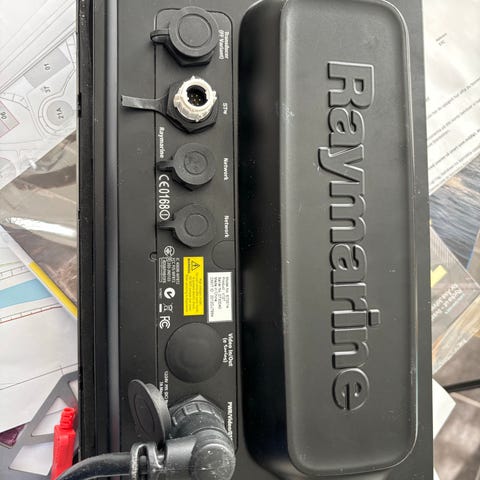 Raymarine Axiom 9 plotter med stor skärm. Medföljer sjökortskort från Raymarine Lighthouse Charts North Europe samt kablar och fästen som syns på bilderna.