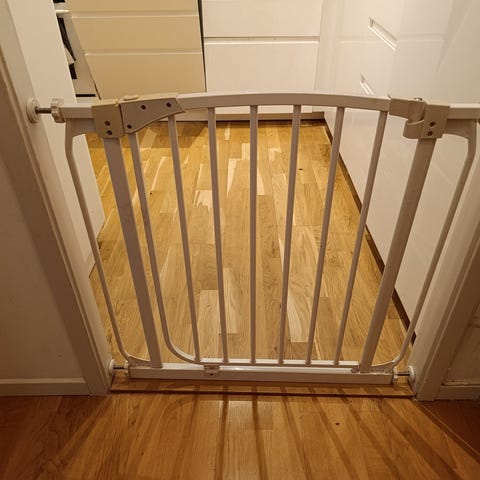 Vit säkerhetsgrind för dörröppning