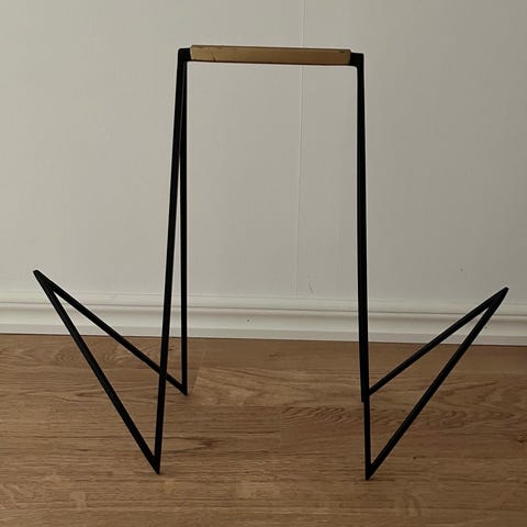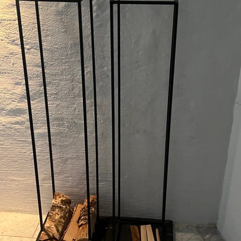 Snygg vedkorg/vedförvaring i metall. Rymmer mycket, kan packas ända upp till handtag. Lättvikt. Smidig att både hämta/bära i och framförallt snygg clean design, och att ha stående vid öppna spisen el kaminen. Hämtas i villa i Sunnersta när man vill