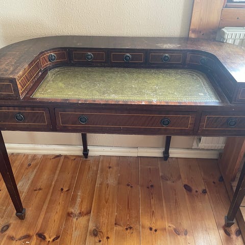 Skrivbord i klassisk Louis XV-stil med intarsia och överdel