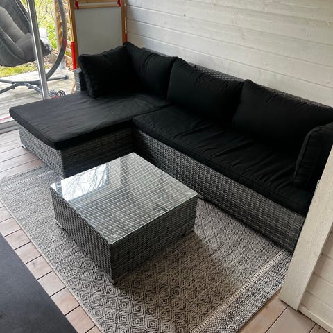 Svart balkong soffa