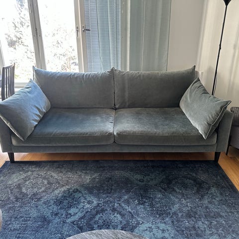 Säljer en stilren och bekväm Harper 3-sits XL soffa i färgen Jump beige med svarta ben från MIO.