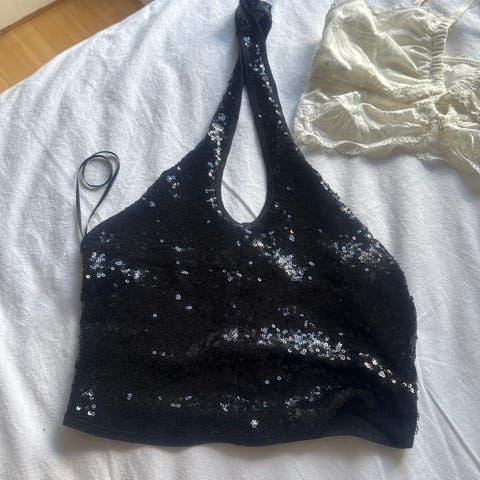 Svart satin corsettopp S dam