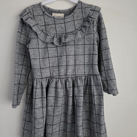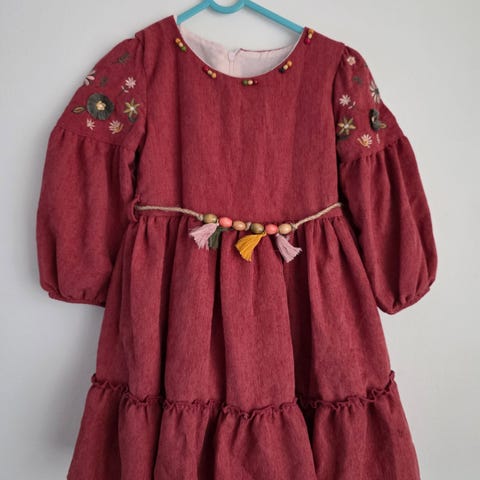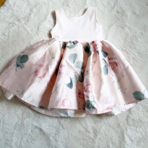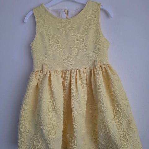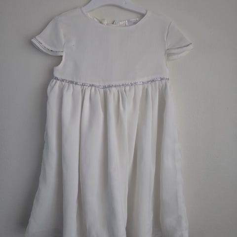 Söt randig klänning i stl 110 med rosett fram. Dragkedja bak och knytband i midjan för bättre passform.