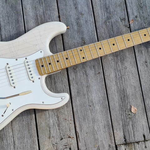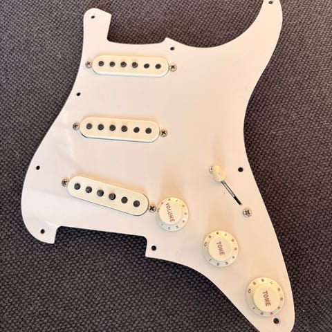 Här en mycket kompetent alternativ till en Fender Stratocaster Custom Shop. Byggda på Holländsk mark, Kauffmann gitarrer har enastående kvalité med egentillverkade mickar som passar enorm range och passar bra till clean jazz till hårda sound. Denna 63s är byggd enligt Stratocaster 63 spec i HSS format. Spec. kan ses i bilder. Ett enastående instrument i klassisk reliced shell pink och mint grön pickgaurd. Alltid förvarad i 45 - 50% luftfuktighet och i mycket bra skick. Gitarren köptes ny av undertecknad för ca. 1 år sedan.
