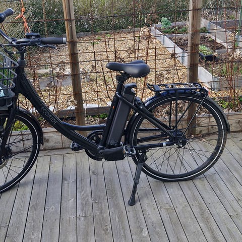 Elcykel med cirka 45 km räckvidd med fulladdat batteri.