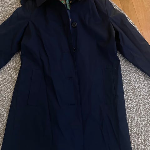 En svart damkappa i rak modell från H&M. Använd fåtal gånger och har 2 funktionella fickor i sidorna samt är det knappar framtill som döljs. Hämtas på plats.