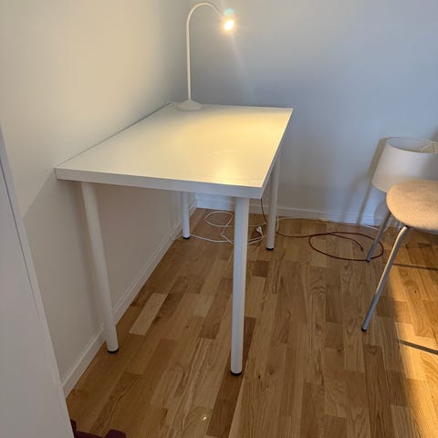 Säljer vårt (ena) skrivbord. Det högra på första bilden. Minimalt kantstött i hörn se bild, i övrigt nyskick