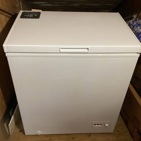 Vit frysbox från Matsui med överlock och enkel vredreglering på framsidan. Invändigt finns en löstagbar trådkorg för smidigare organisering av maten. Mått 84x56x52 cm. Fungerar felfritt. En kompakt modell som passar i hem som kalla utrymmen t ex garage.
