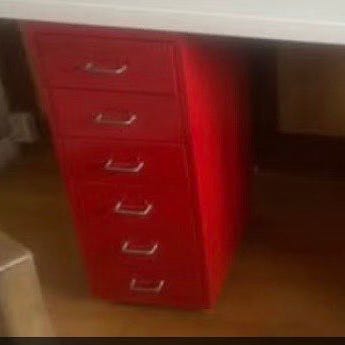 Vit hurts med sex lådor och metallhandtag, bra som förvaring vid skrivbord eller i hobbyrum.