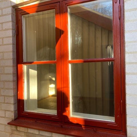 Träfönsterbågar med spröjs och glas