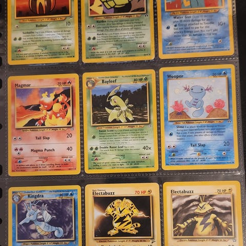 Pokemon, 36 olika kort från Team Rocket, 1999-2000. Korten sitter i plastfickor i pärmblad som på bilderna. I bra skick, inte använda.