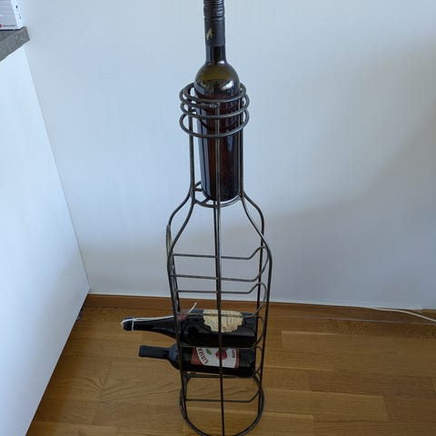 Väggförvaring från Ilva med flera metallbyglar på en trälist. Snygg att hänga upp på väggen för vin eller champagne