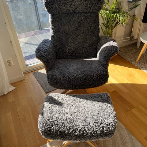 Timeout fåtölj med fotpall i fårskinn