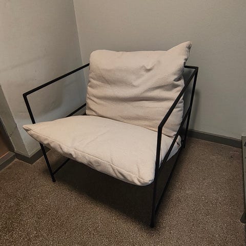 Säljer en stilren och mycket bekväm fåtölj i teddy/bouclé från SalesFever, inköpt på Chilli. Modern design med svarta metallben som passar perfekt i både vardagsrum och sovrum.