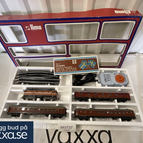 För konkursbos räkning säljs ett parti modelljärnvägsmaterial i mindre skala (troligen N-skala).