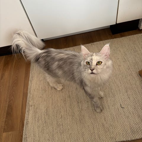 Hon äter allt och är glad i mat utan några magproblem. En fantastisk fin och blänkande svart päls. Vi ställde ut henne som ung och Domarna berömde henne mycket. Så är nån intresserad av utställningar så passar hon utmärkt för det oxå.
