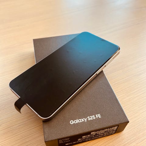 Samsung Galaxy S25 FE med 128 GB lagring i grå färg. Ligger i originalkartong och har trippelkamera på baksidan. Ej operatörslåst.