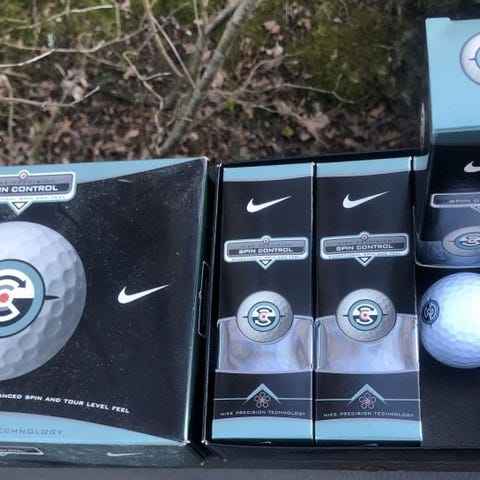 Nike Power Distance golfbollar i originalförpackning. Flera rör med bollar ligger i kartongen, se bilder för antal och utseende.