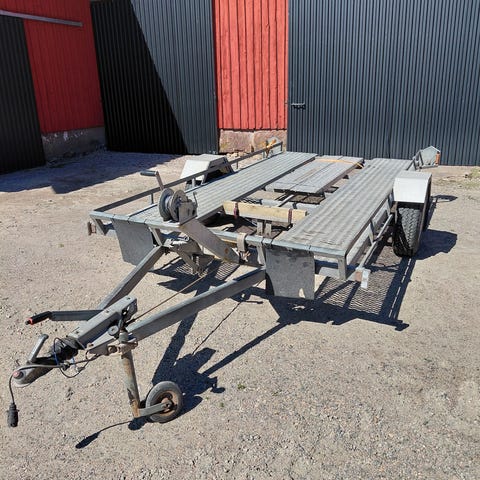 Tältkärra/släpvagn med kapell och dubbelaxel.