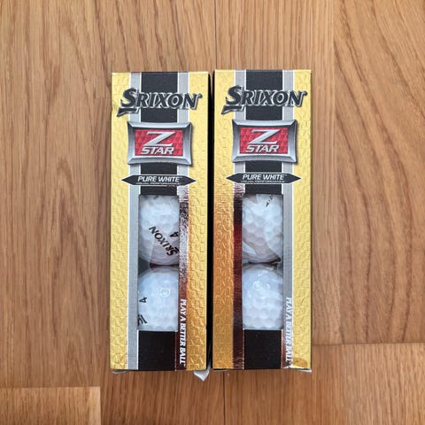 Två rör golfbollar från Titleist, en Pro V1x och en NXT Tour. Förpackningarna är original med fönster där bollarna syns.