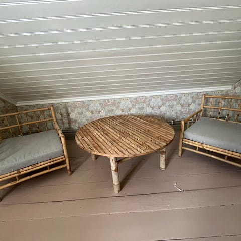 Säljer ett möbelset från Vetura Home, serie Cane. Setet består av 2 stolar och 1 bord. Nypris ca 10 000 kr. Köpt på Jotex