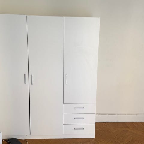 Hej! I samband med inflytt i vår nya lägenhet skänker vi bort denna fina garderob. Den är fräsch och i mycket gott skick. Perfekt för dig som behöver extra förvaring! (Vet inte vart den är ifrån, det gick inte att inte välja ett varumärke)