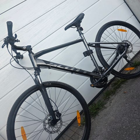 Scott hybridcykel i stl S med 28" hjul och skivbromsar fram och bak. Utrustad med framgaffel med dämpning och skärmar över hjulen. Mycket smidig cykel, sparsamt använd. Ca 2 ,5 år gammal. Förvarad inomhus vintertid. Ev byte skeppshult eller dyl mon 7 vxl mer upprät position