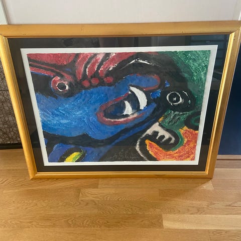 Numrerad litografi av Helkama med golfklubba och boll som motiv. Säljes med ljus passepartout och smal guldfärgad ram, redo att hängas upp på väggen.