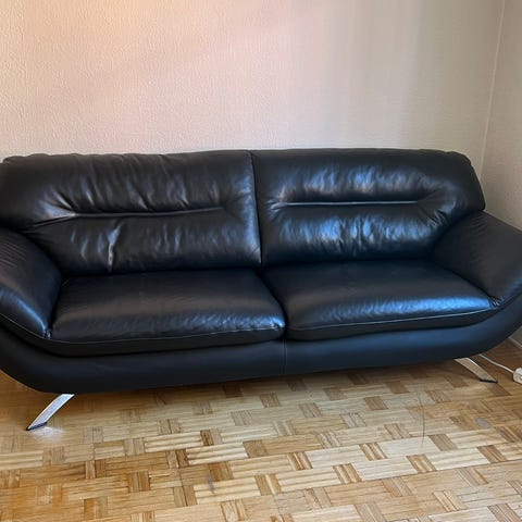 Otroligt bekväm soffa tillsammans med matchande fåtölj säljes. Ger en exklusiv känsla i hemmet med stilrena detaljer och stadiga armstöd i skinn.