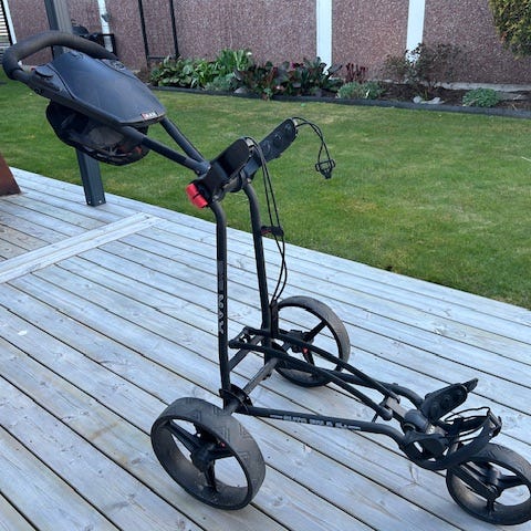 Hej, säljer min Clicgear 4 som är i nyskick använd max 2-3 rundor ! praktiskt förvaringsfack och hållare vid handtaget. Medföljer även paraplyhållare och separat sitsdel som kan monteras på vagnen.