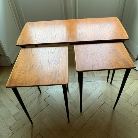 Hej! Säljer nu mina originella satsbord i NYSKICK!! De är nydligen slipade och oljade. Är troligtvis från 40-tal till 60-tal. Hör av dig vid frågor!