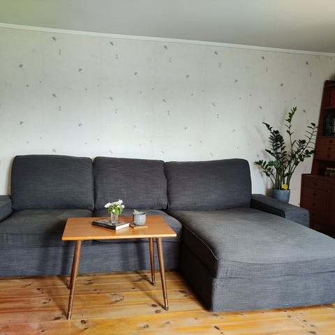 Soffan är i okej skick, men har slitage på kanten, därav lågt pris. Inget som påverkar funktionen, men syns, så perfekt som första soffa, till studentboende eller som extra soffa.